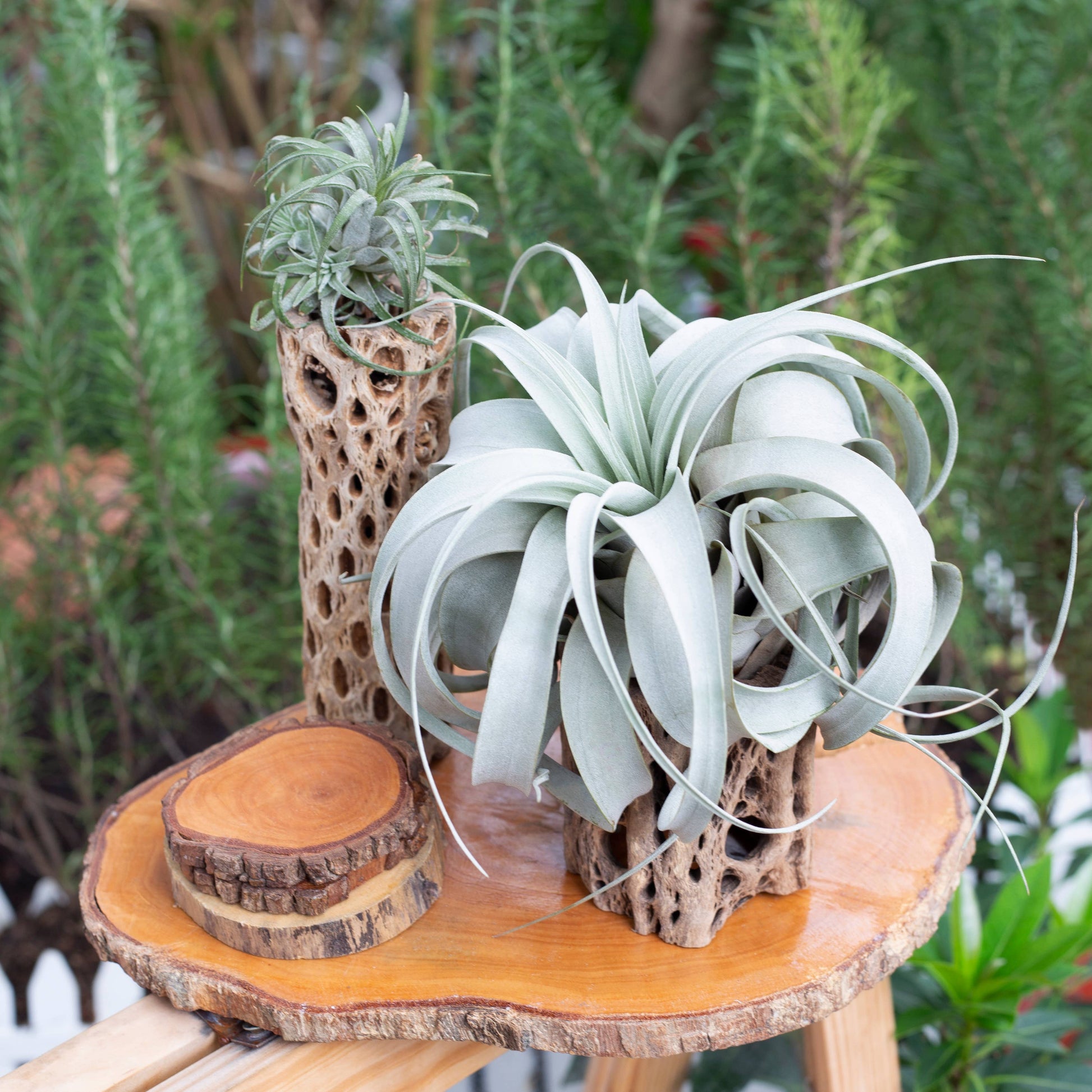 Tillandsia Xerographica is a beautiful air plant with long silvery green leaves that gets thinner at the tips. As it matures, the leaves begin to curl at the tips and eventually curl up into a loose ball. These dense trichomes on its leaves protect the plant from the sun and facilitating the moisture-absorbing process.