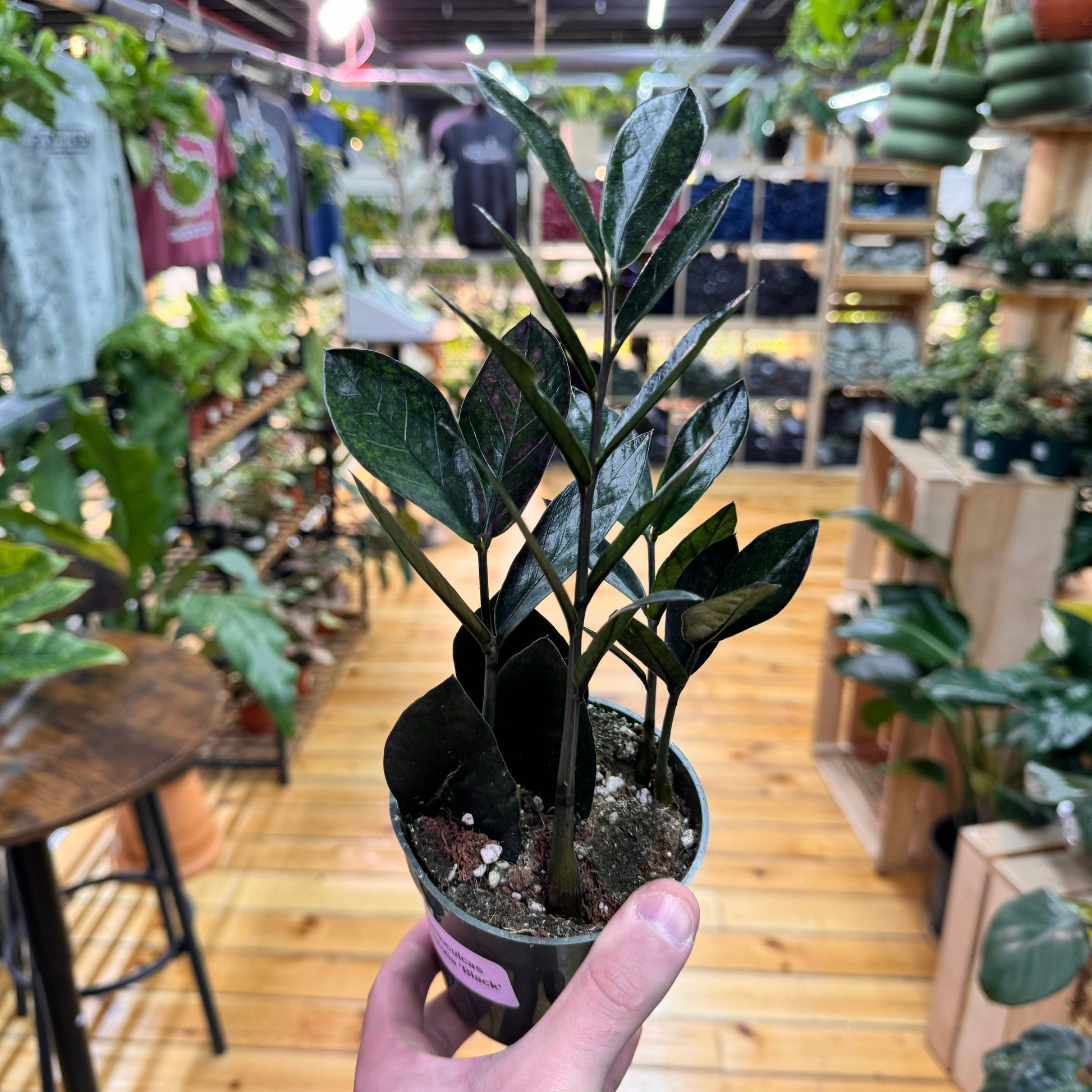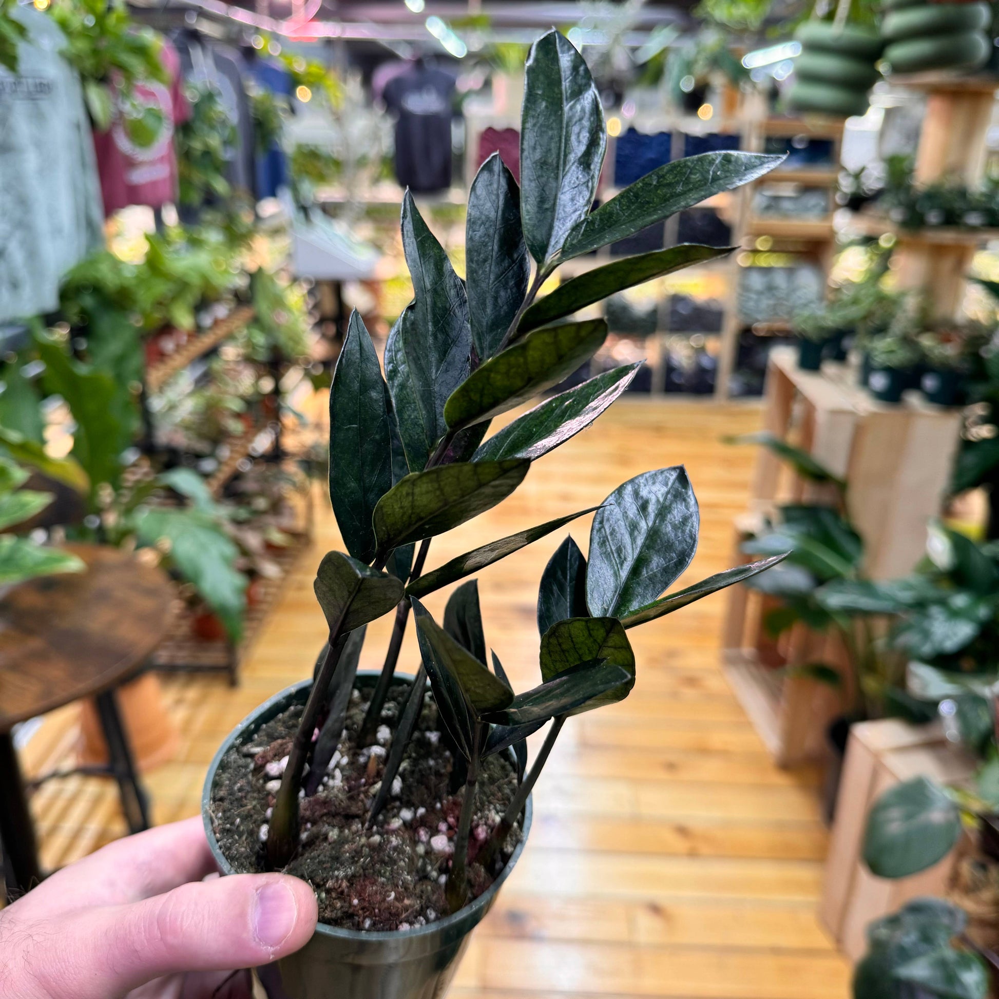 Zamioculcas Zamiifolia also known as the ZZ Plant adds to any interior space with its unique growth pattern. Because of its low water requirements and drought tolerance it can handle many environments (dry and humid). The drought-tolerant ZZ plant is a wonderful addition to low-light situations in homes and offices, but all parts of this plant are poisonous. Keep it away from children and pets.